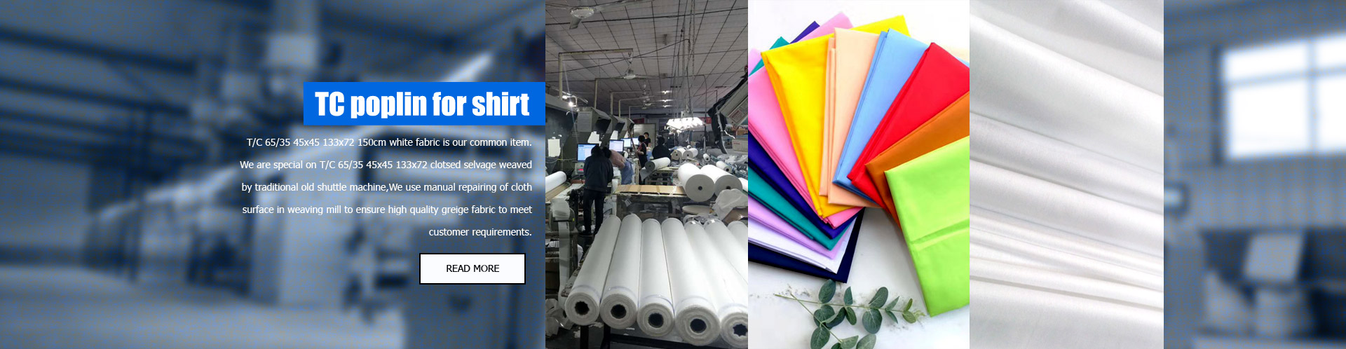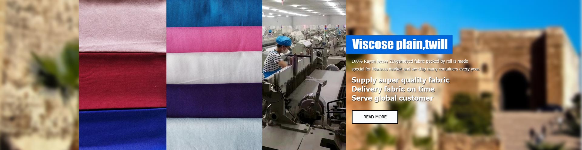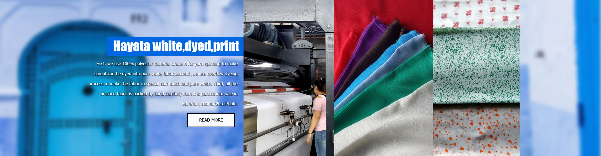 WEIFANG HUALI I/E CO., LTD is specialized in textile more than 30 years. We have 3 family factories including Yuncheng Jiuhe yarn spinning factory, Changyi Chenchi weaving factory and Changyi Chenchi dyeing factory in Shandong province, China. Now our weaving factory is equipped with 208 sets of air jet looms, 2000 sets of shuttle looms and 198 sets of Rapier looms. OUR PRODUCT:TC POPLIN FOR SHIRT,TC POCKET LINING,TC WORK WEAR FABRIC,VISCOSE PLAIN/TWILL,HAYATI WHITE/DYED/PRIN,POLYESTER FABRIC In order to meet Morocco market, our company is putting our main emphasis on the fabrics for Morocco market. We supply many kinds of fabric ...